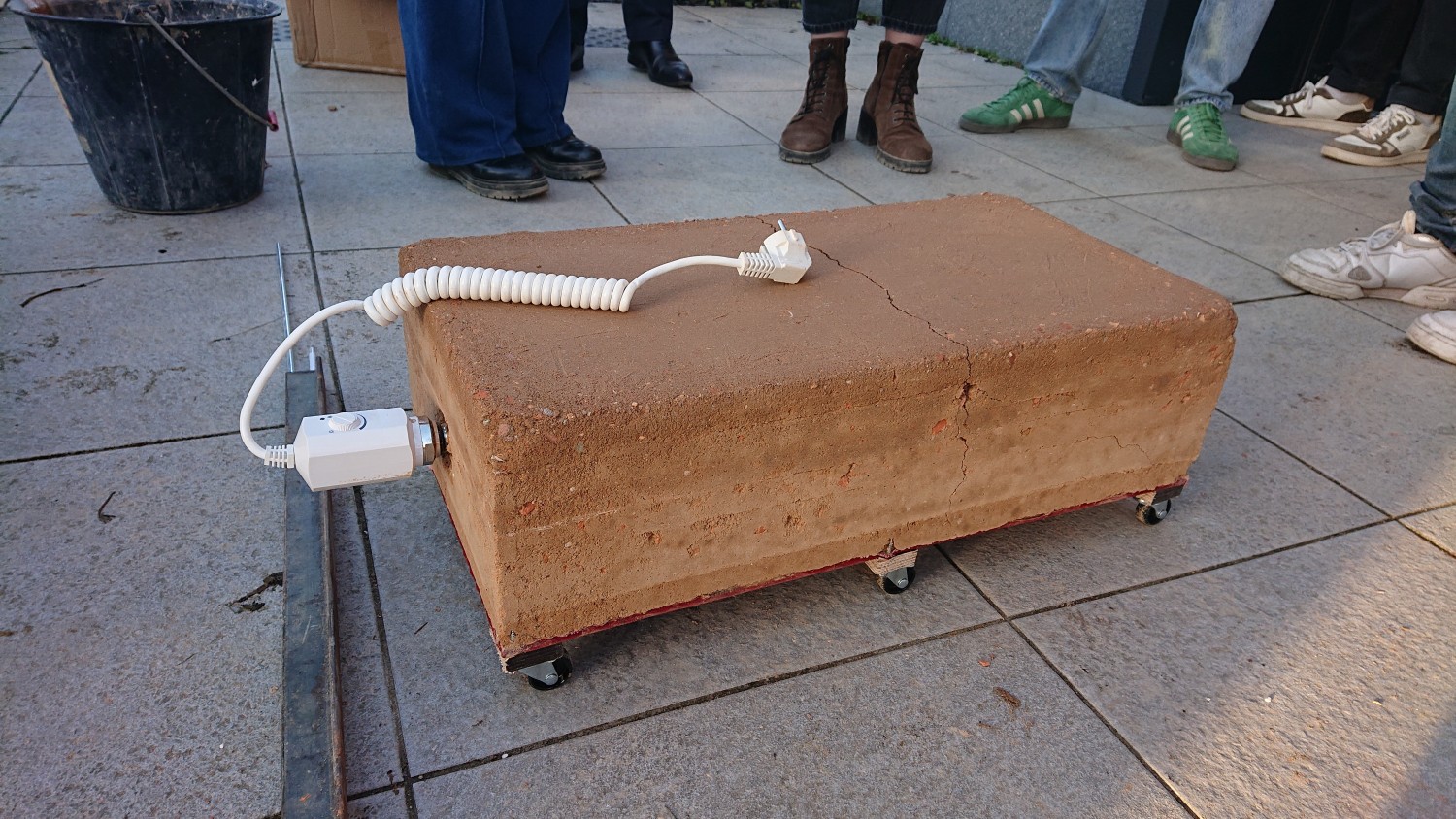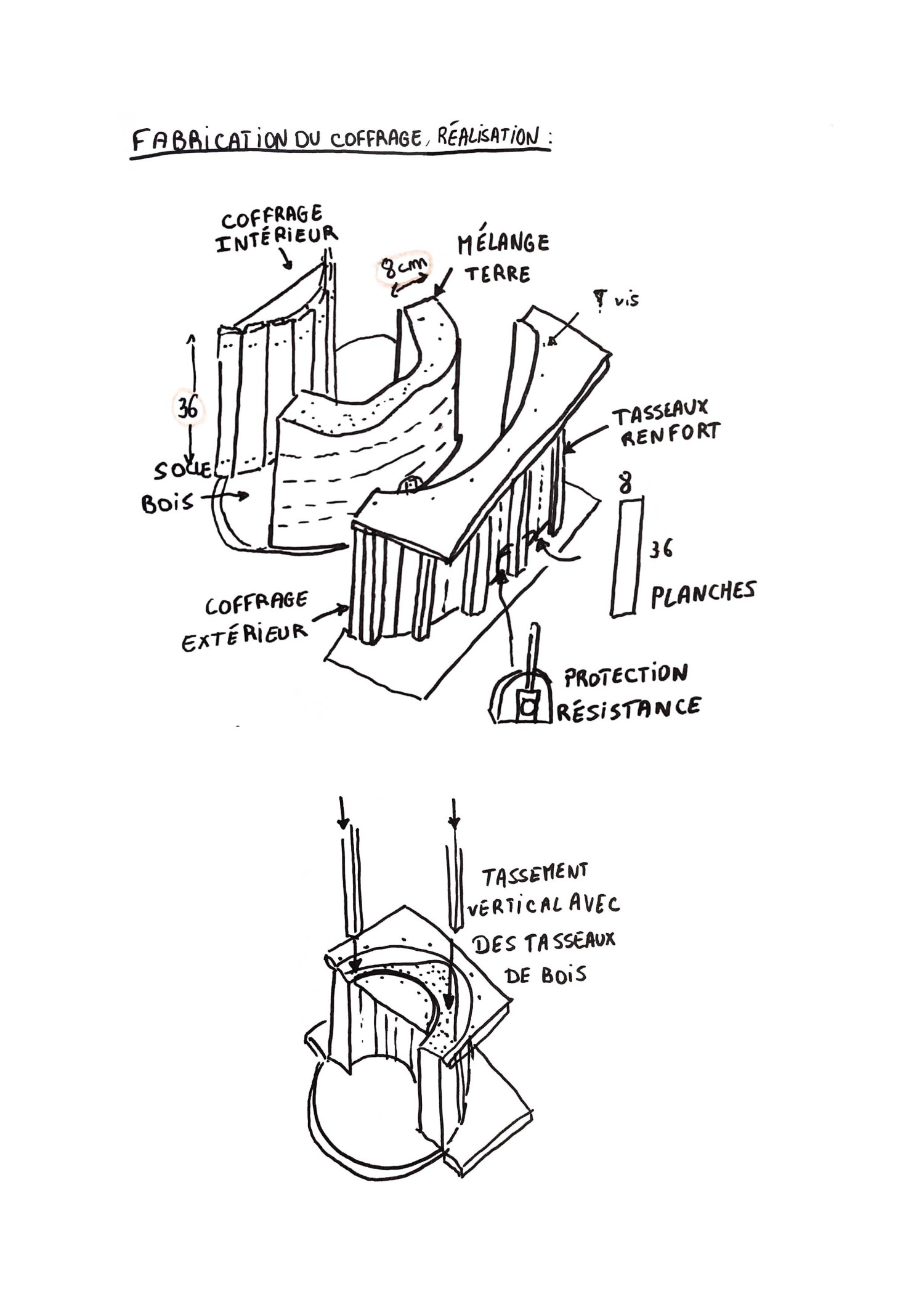 Nathalie a deux enfants et aime accueillir des gens à table. Son grand chauffe-pied en pisé réchauffe ses convives par contact direct (conduction). Il tempère également l’air sous la table (convection).