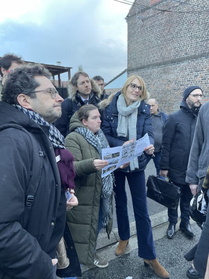 Visite de la Cité d'Orient avec Stéphanie Dupuy-Lyon directrice générale de l'aménagement, du logement et de la nature, le Préfet de Lens, Philippe Duquesnoy Maire de Ville de Harnes, Mélanie Delots de l’ERBM, Jean-Baptiste Marie directeur général de l'Europe des projets architecturaux et urbains et autres acteurs nationaux et locaux engagés pour la qualité du logement de demain